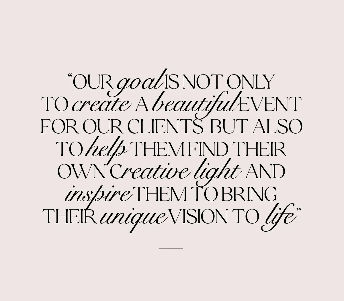 Our goal is not only to create a beautiful event for our clients but also to help them find their own creative light and inspire them to bring their unique vision to life. We believe that our clients are not just customers but dear friends, and we cherish the relationships we build throughout the planning & floral process. We pride ourselves on our honesty, compassion, and loyalty to our clients. We believe that building a strong relationship with our clients is essential to creating an event that truly reflects their personality and style. Whether they have a clear vision in mind or would like us to take the reins, we are here to support and guide our clients every step of the way.