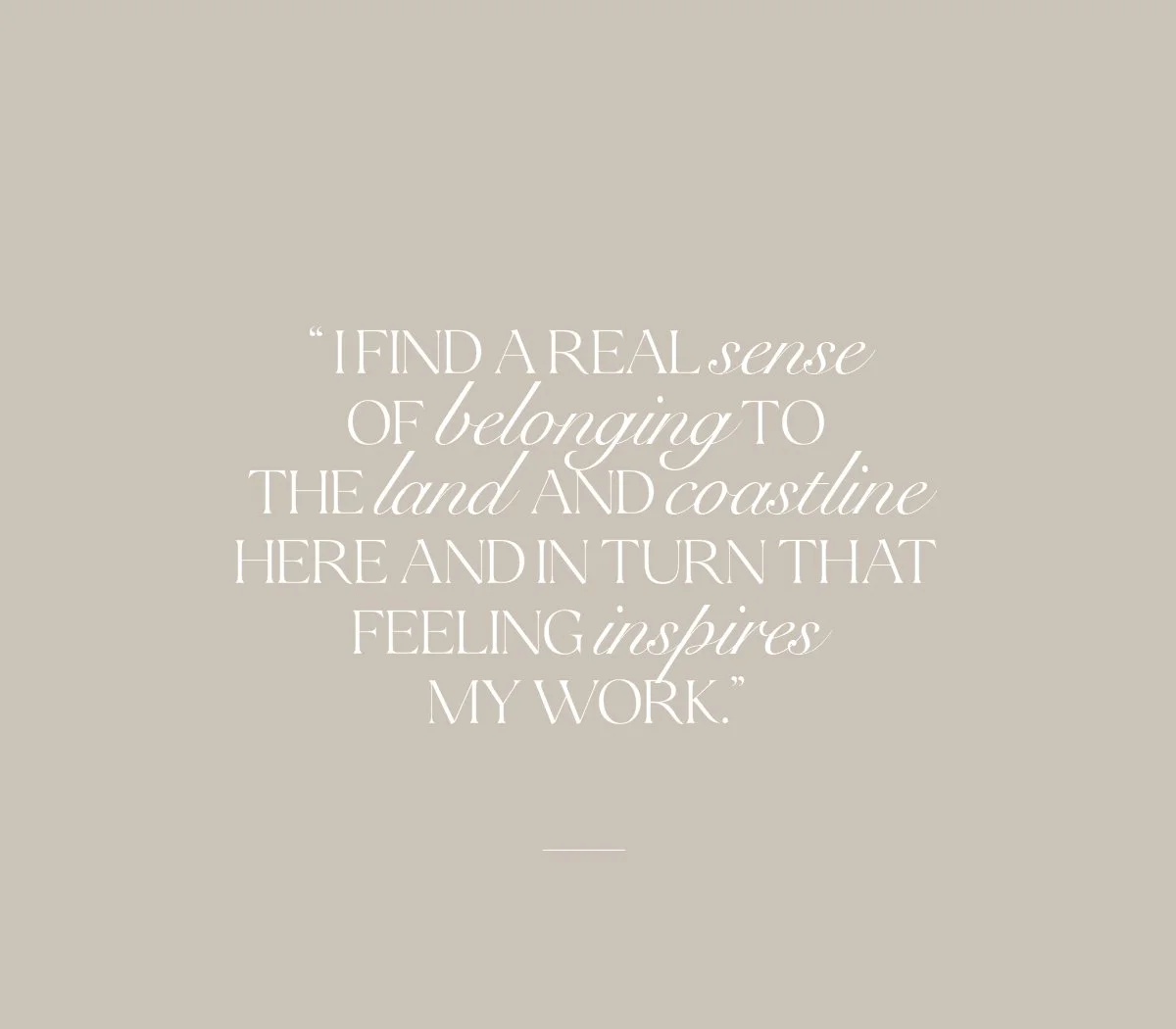 Meaningful design and beauty inspire me. There is so much beauty found in nature, in the seasons and in the magic that the ocean brings. A majestic sense of belonging, grounding calm mixed with ferocious waves and strength. Having clients who connect with and believe in my work also inspires me and fuels my fire to continue doing what I love.