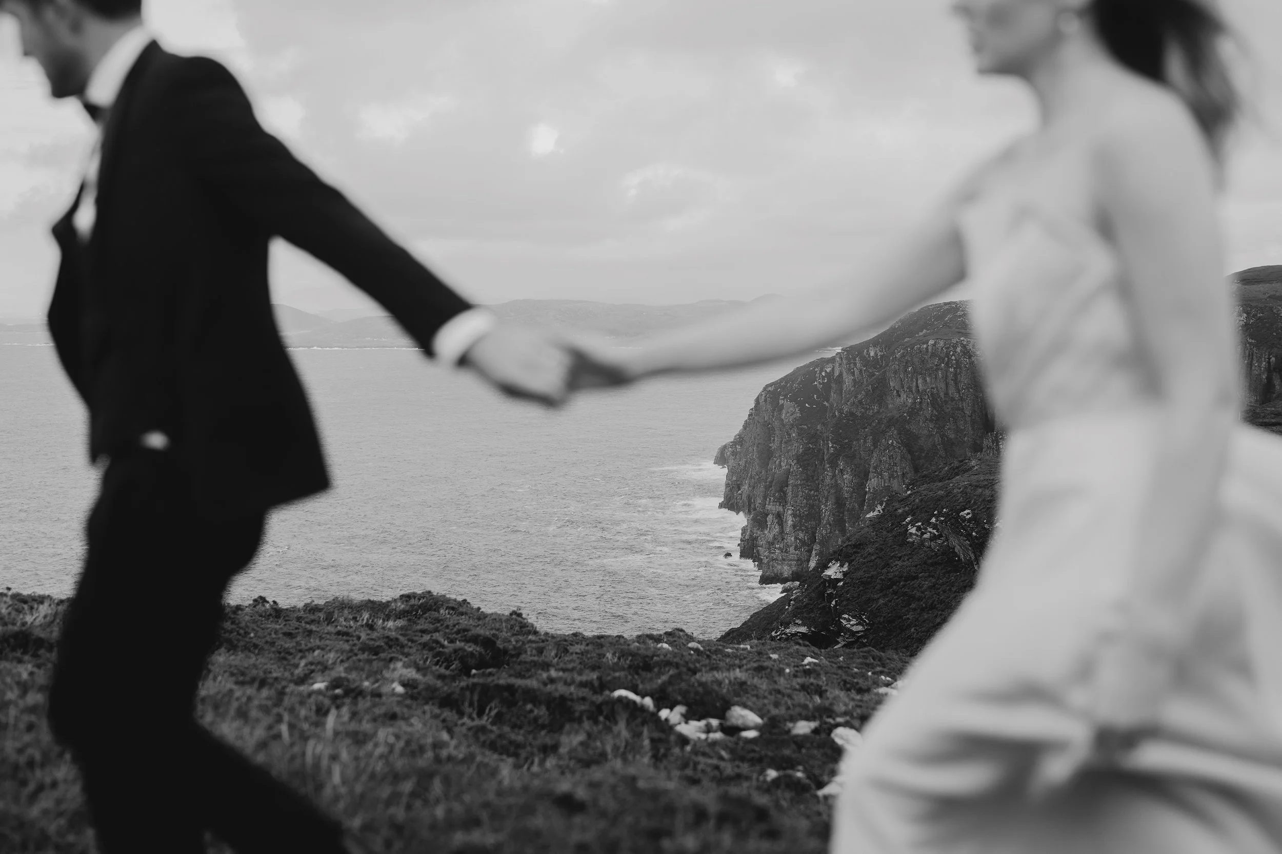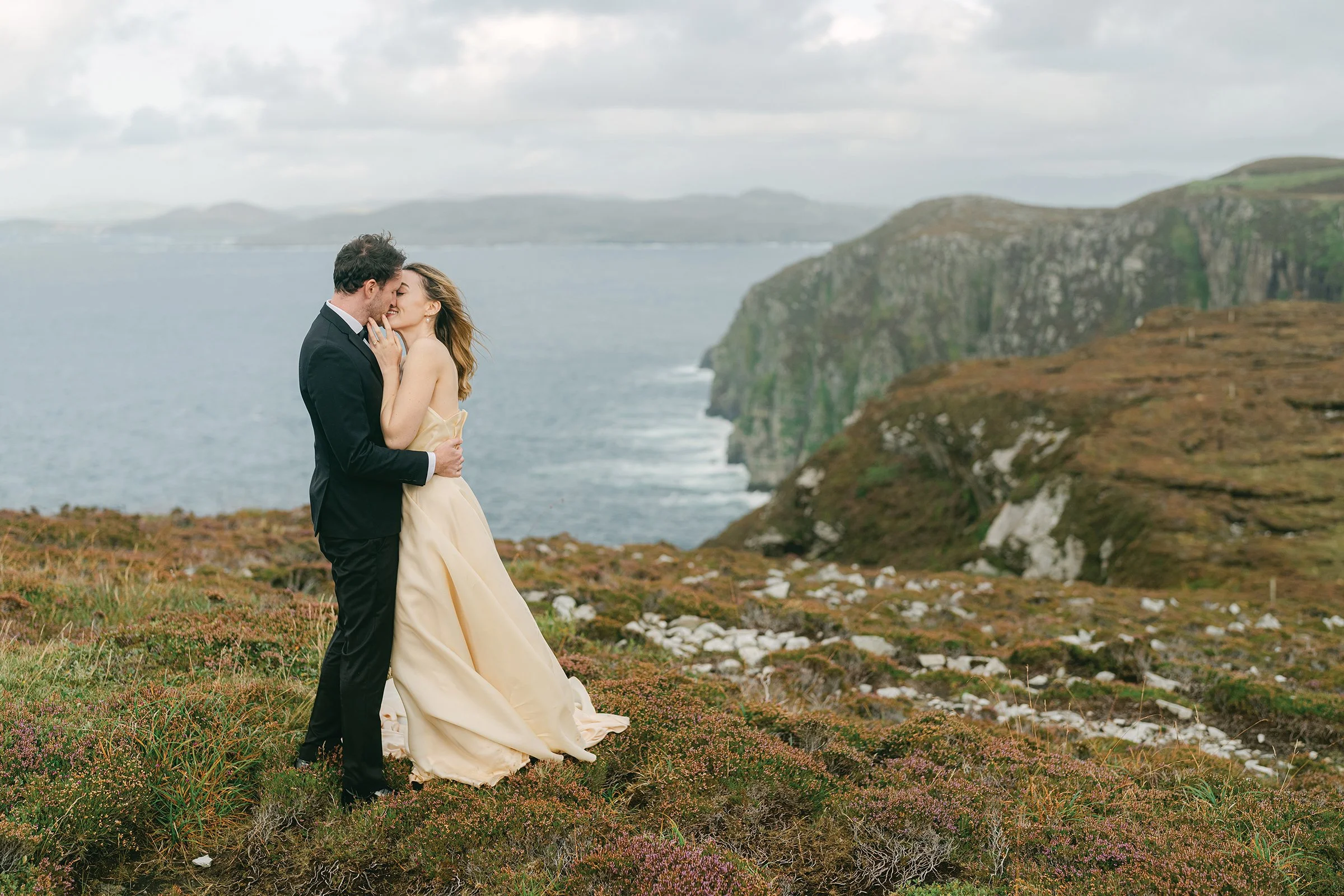 Surrender. A yielding and a trust in the unknown. Lisa and Kevin lived their greatest wedding advice as they chose to soak up every moment their day brought. Time stood still once as they took each other’s hands and wed in Lisa’s home place of Galway, Ireland. Then again, enveloped in a coastal forest of Donegal, a tribute to Kevin’s hometown, the seconds and minutes froze for a short while in a private course of peace and promises. Their second vow exchange became a moment of stillness, intention, intimacy, and undivided presence as they read each word for only each other and the seaside wind to hear. They ventured from woodlands to towering cliffs, to the sand of a calm beach — a journey of pure poetry, void of outside chatter, tourists, or even beloved wedding guests — this time was entirely their own.